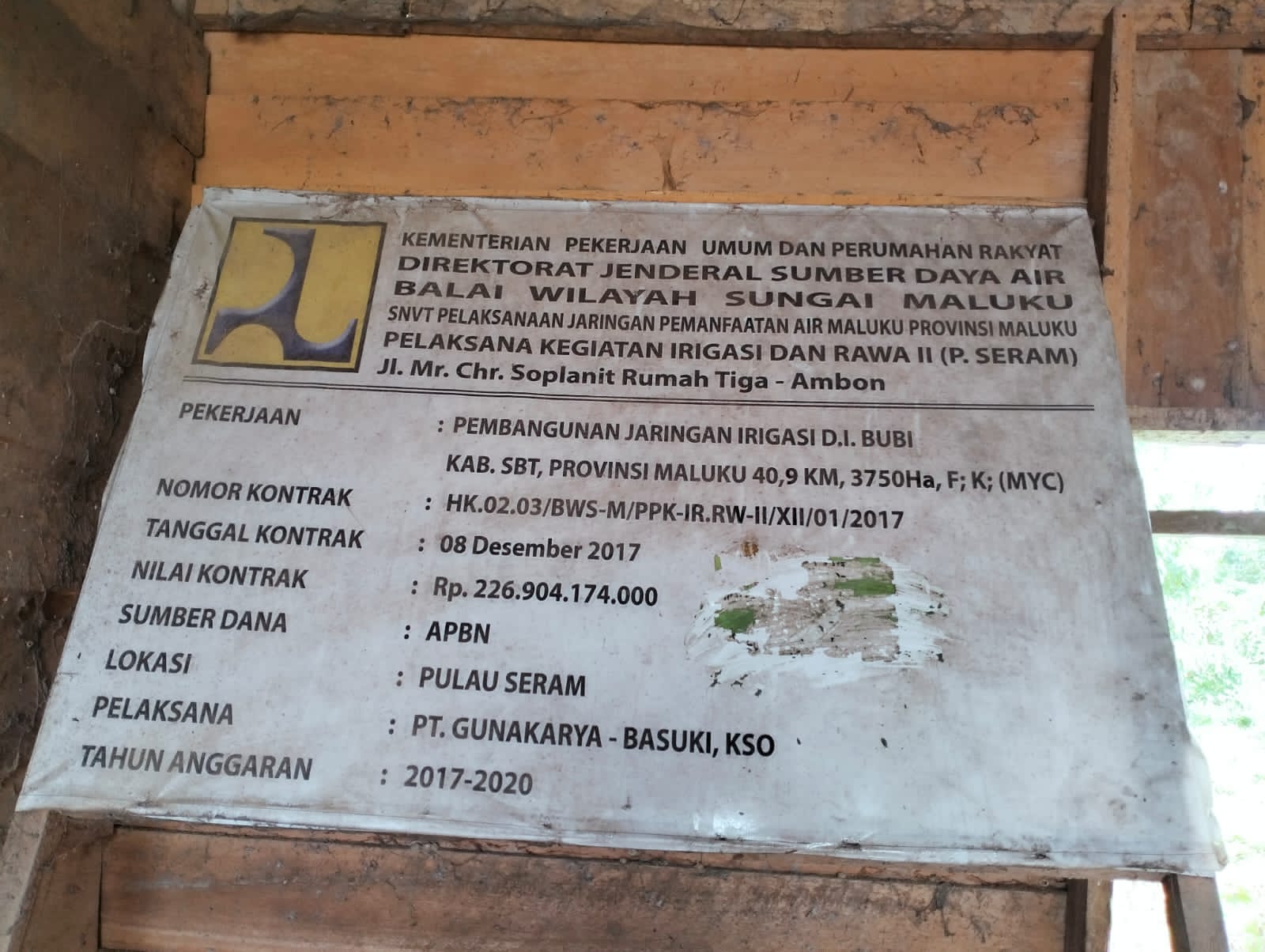“Proyek irigasi Bubi kabupaten SBT yang sampai sekarang mangkrak lantaran diduga kuat, anggaran telah di korupsi oleh kontraktor dan Satker balai wilayah sungai Provinsi Maluku,” Kata Usman