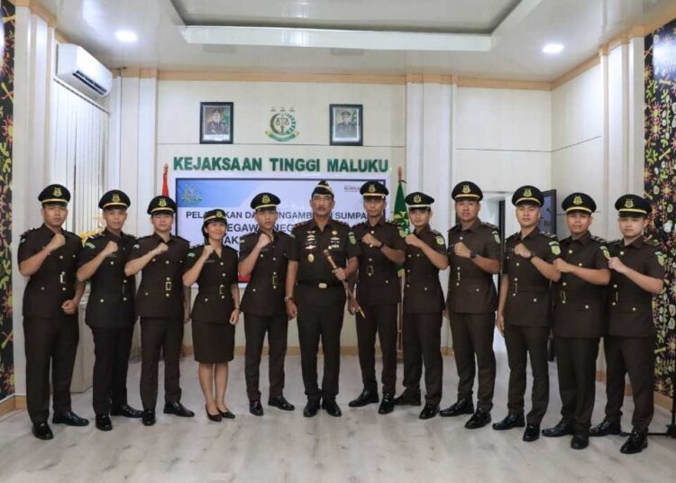 Ambon, Kilaskota.com —Kejati Maluku, Agoes Soenanto Prasetyo S.H, MH pada kesempatan itu mengucapkan selamat kepada mereka yang dilanti, yang dilantik ini, CPNS Golongan III/a jalur Calon Jaksa dalam formasi Penelaah Penuntutan dan Penegakan Hukum di Wilayah Maluku ini tersebar di beberapa jajaran Kejaksaan Negeri dan Cabang Kejaksaan Negeri di wilayah hukum Kejati Maluku.