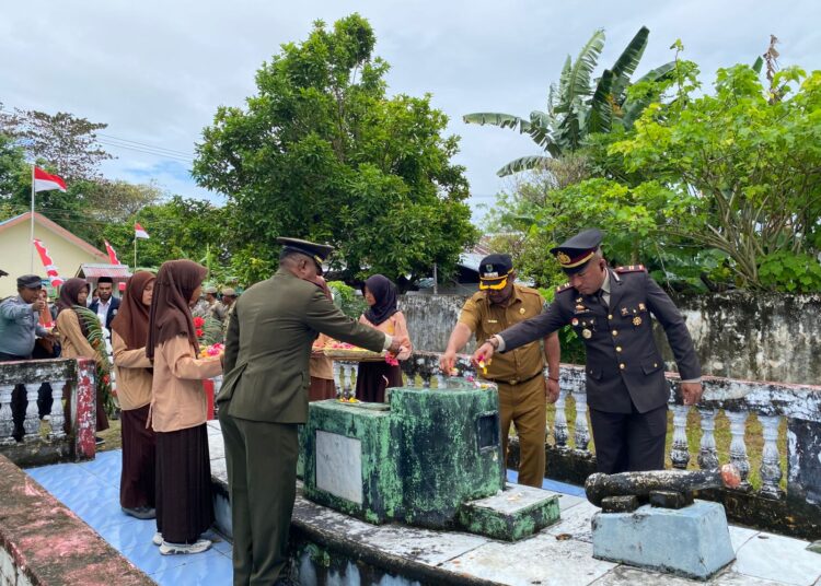 SBT, Kilaskota.com —Dalam rangka memperingati hari kemerdekaan Republik Indonesia, Kapolsek Geser, Iptu Mo Solissa gelar upacara ziarah tabur bunga di taman makan Pahlawan Mayor Abdullah pada, Sabtu (16/8/2025).