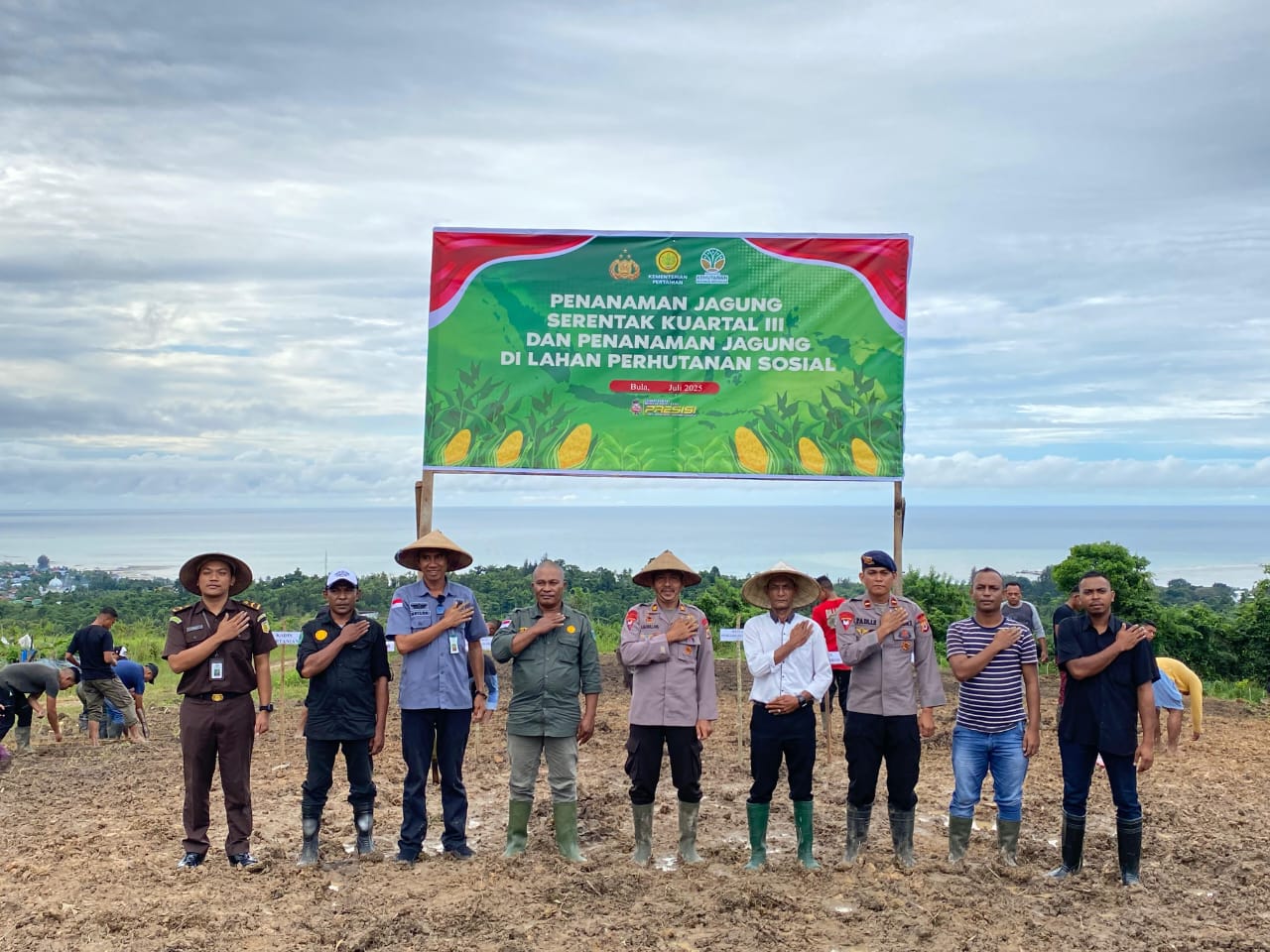 SBT, Kilaskota.com —Penanaman jagung kurtal III dan penanaman jagung di perhutanan sosial serentak dipantau via Zoom secara langsung dengan Kapolri, Menteri Pertanian serta Mentri Pertanahan. Kegiatan tersebut berlansung pada, Rabu (09/7/2025)